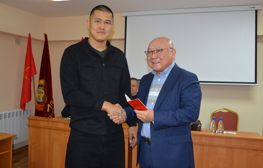 Перед началом заседания глава коммунистов Калмыкии Николай Нуров вручил партийные билеты двум вступившим в КПРФ участникам специальной военной операции – Саналу Кекееву и Кириллу Попову. Нашим новым товарищам были вручены также памятные медали «80 лет Победы».