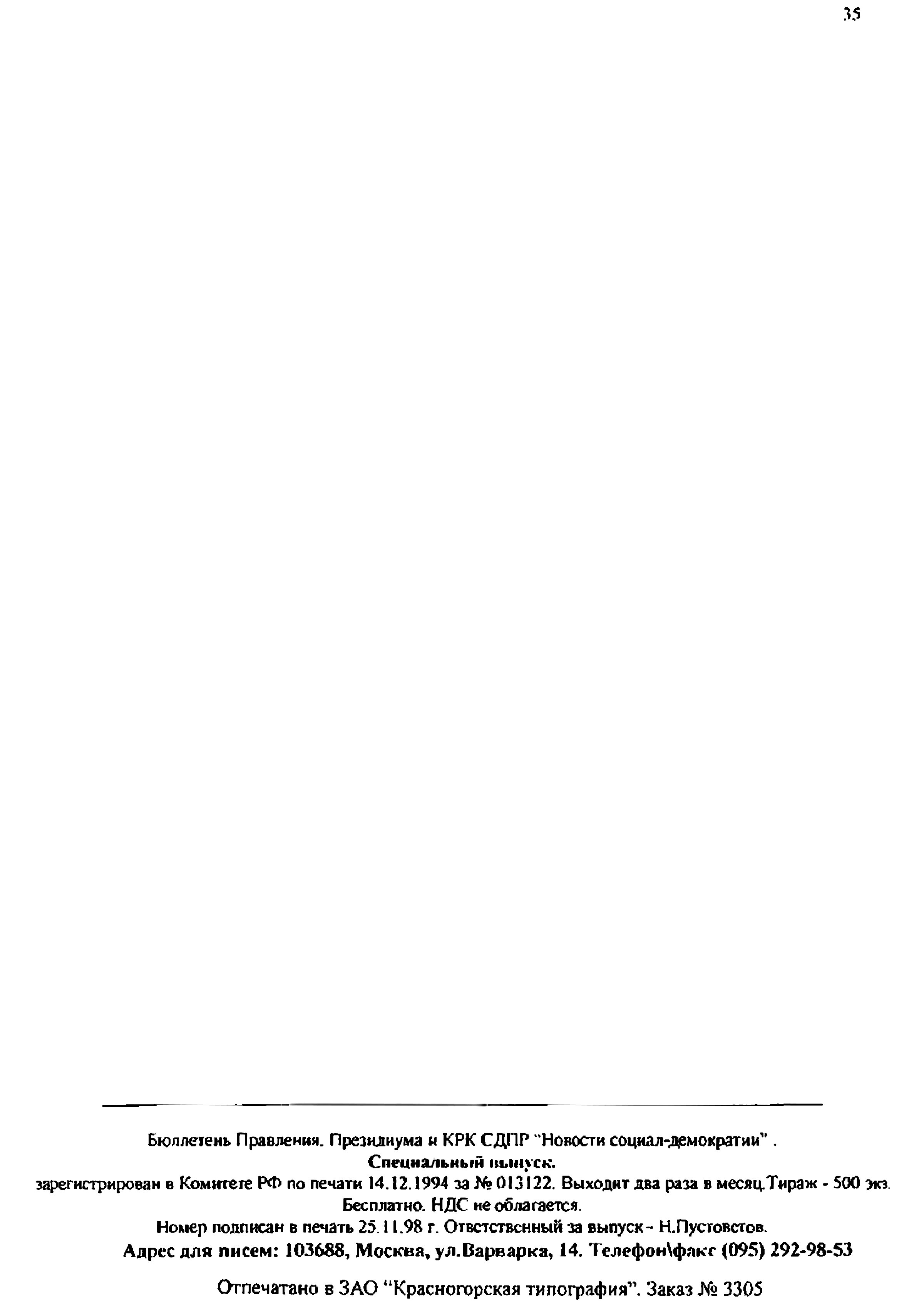 Новости социал-демократии. Информационный бюллетень Правления, Президиума и КРК Социал-демократической партии Российской Федерации. — 1998. — Специальный вып., ноябрь. — 35 с.